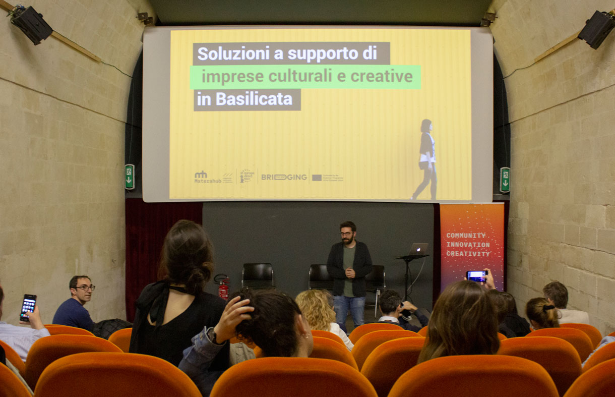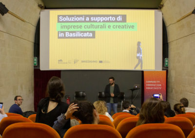 With the Bridging The Gap partnership, represented on stage by Trevor Burgess from Rinova, project coordinator, and Eva Balazovicoca from the Regional Agency Senek, Materahub invited also local intermediaries that are currently working to support the sector and young people to become future professionals of culture and creativity. Among them the C-LAB of Basilicata University, Sviluppo Basilicata a regional development agency and the Municipality of Matera with its plan for the “city of innovation and creativity”.
